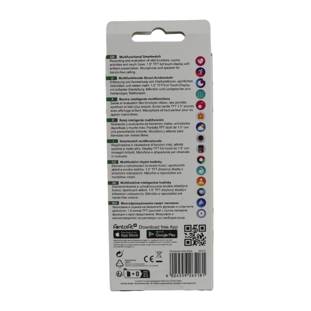 | 450044 | 4024559450044 | Aktivitätstracker FontaFit 295CH Tala schwarz Tracker, Herzfrequenz-, SpO2-Überwachung, IPX7 | EU-Konformitätserklärung |
