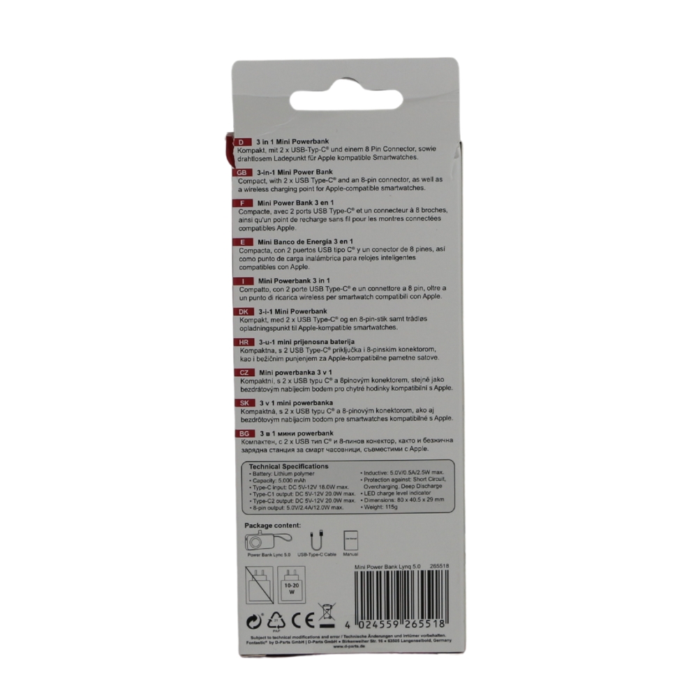 | 262029 | 4024559262029 | Power Bank Kari 10.000mAh integriertes Ladekabel 4in1, Micro-USB/8-Pin/Typ-C + USB-A, schwarz | EU-Konformitätserklärung |